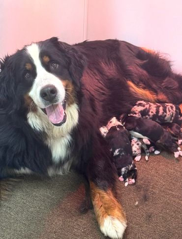 At SoCal Bernese, we are dedicated to breeding healthy and happy Bernese Mountain Dogs In classic black tri, beautiful red and white and unique blue merle. All of our dogs are fully health tested including genetic panels as well as OFAs. Our blue merle and red and white Bernese Mountain Dogs all test 100% Bernese Mountain Dog on their DNA panels. Our passion drives us to ensure that each puppy is nurtured in a loving environment from the very beginning.